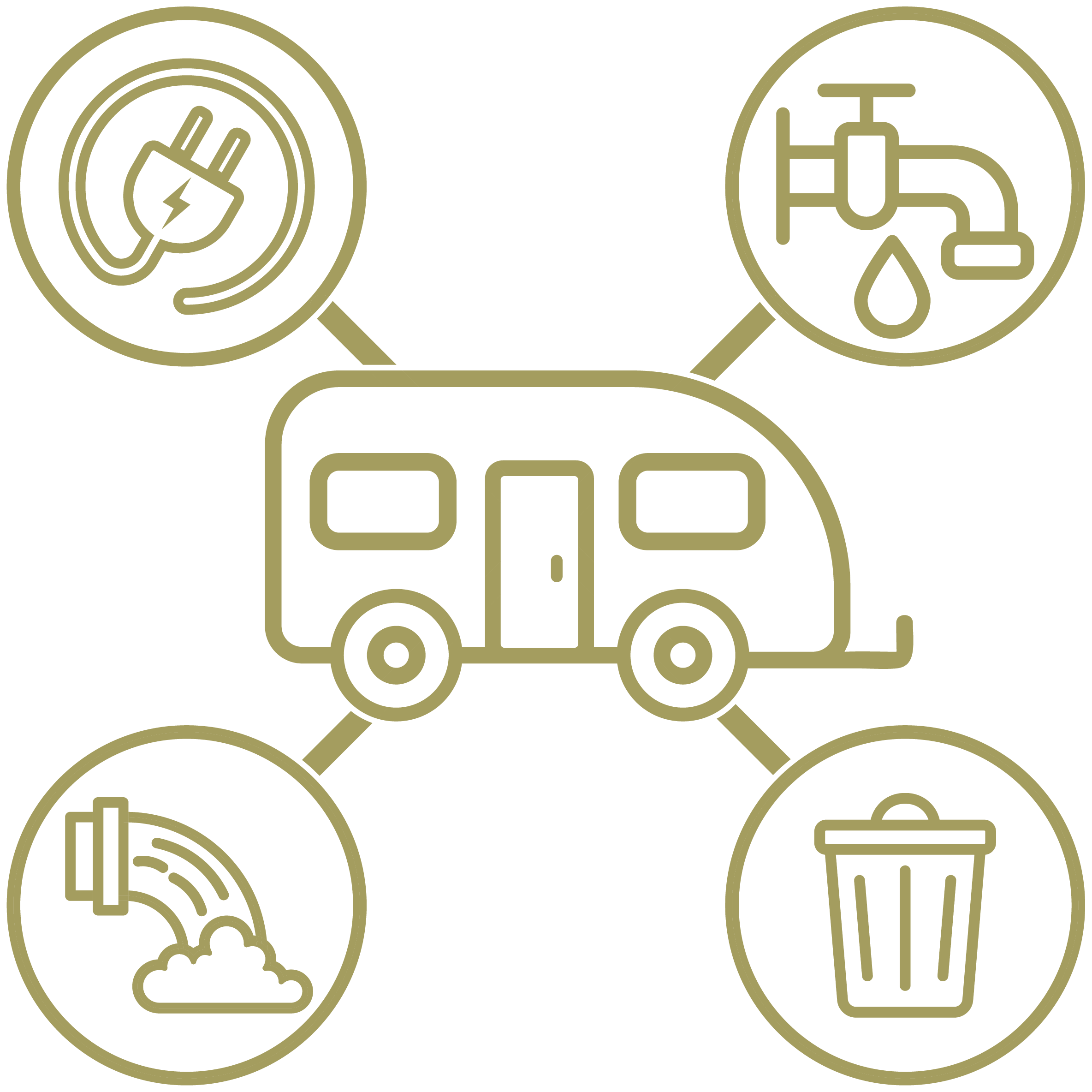 The RV sites have full hookups available: electricity (30 or 50 amp), water, sewer, and trash.